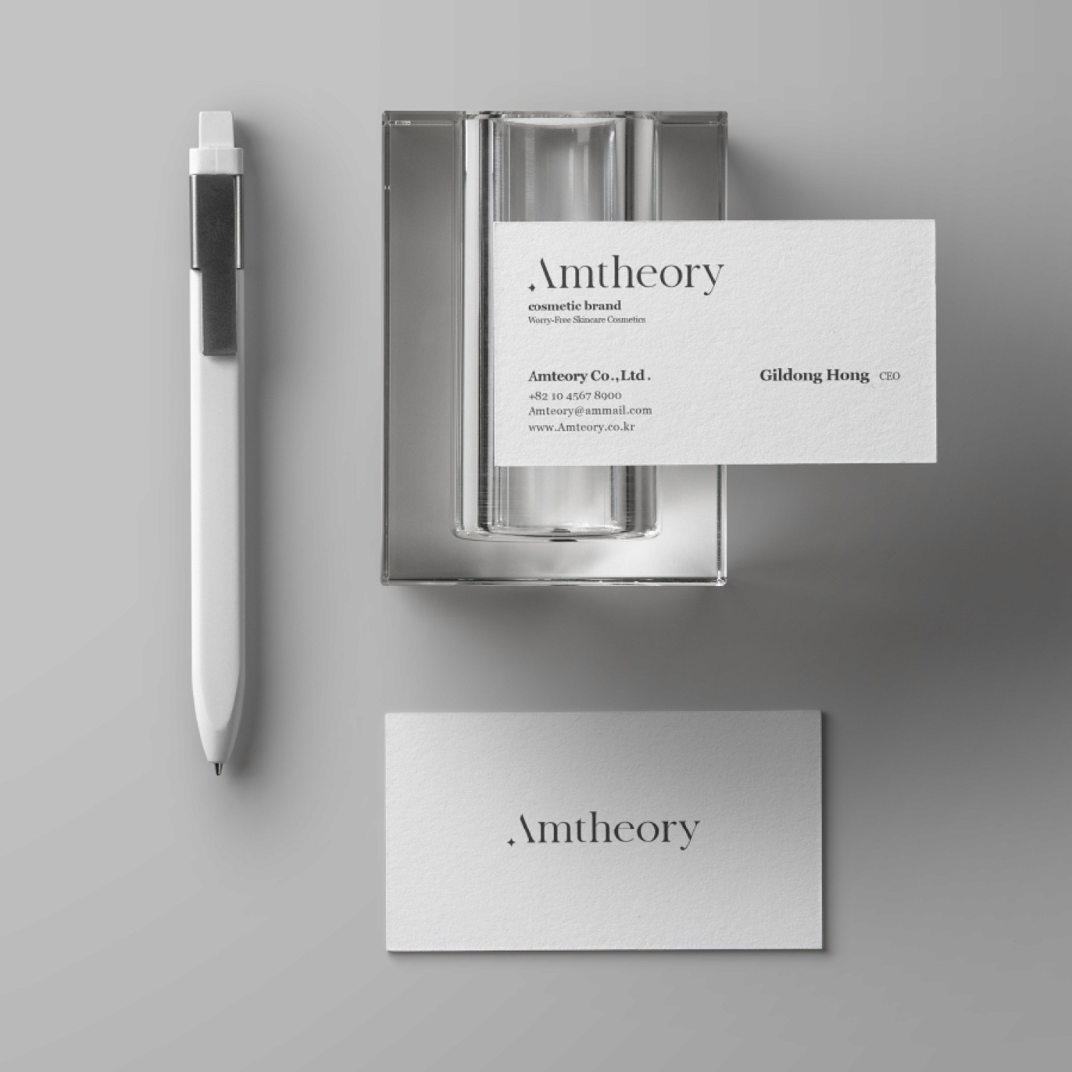 절제된 미니멀 감성과 정제된 타이포그래피로 완성된 스킨케어 브랜드, Amteory입니다. 본질에 집중한 디자인과 신뢰감 있는 무드로 일상의 루틴에 균형과 깊이를 더합니다.
