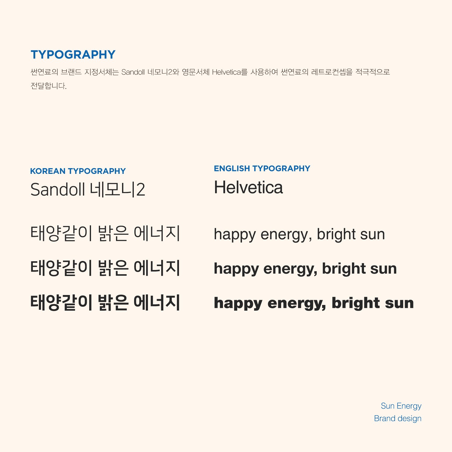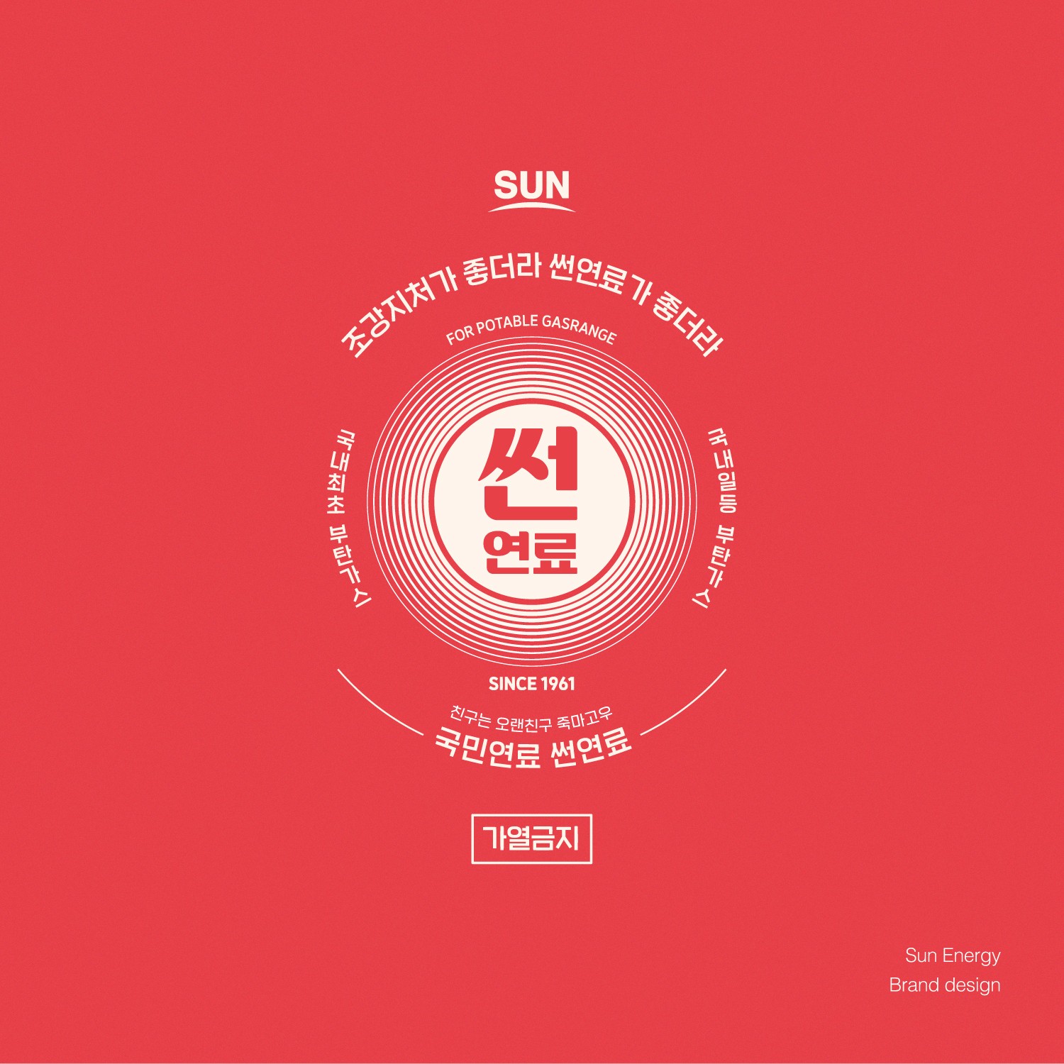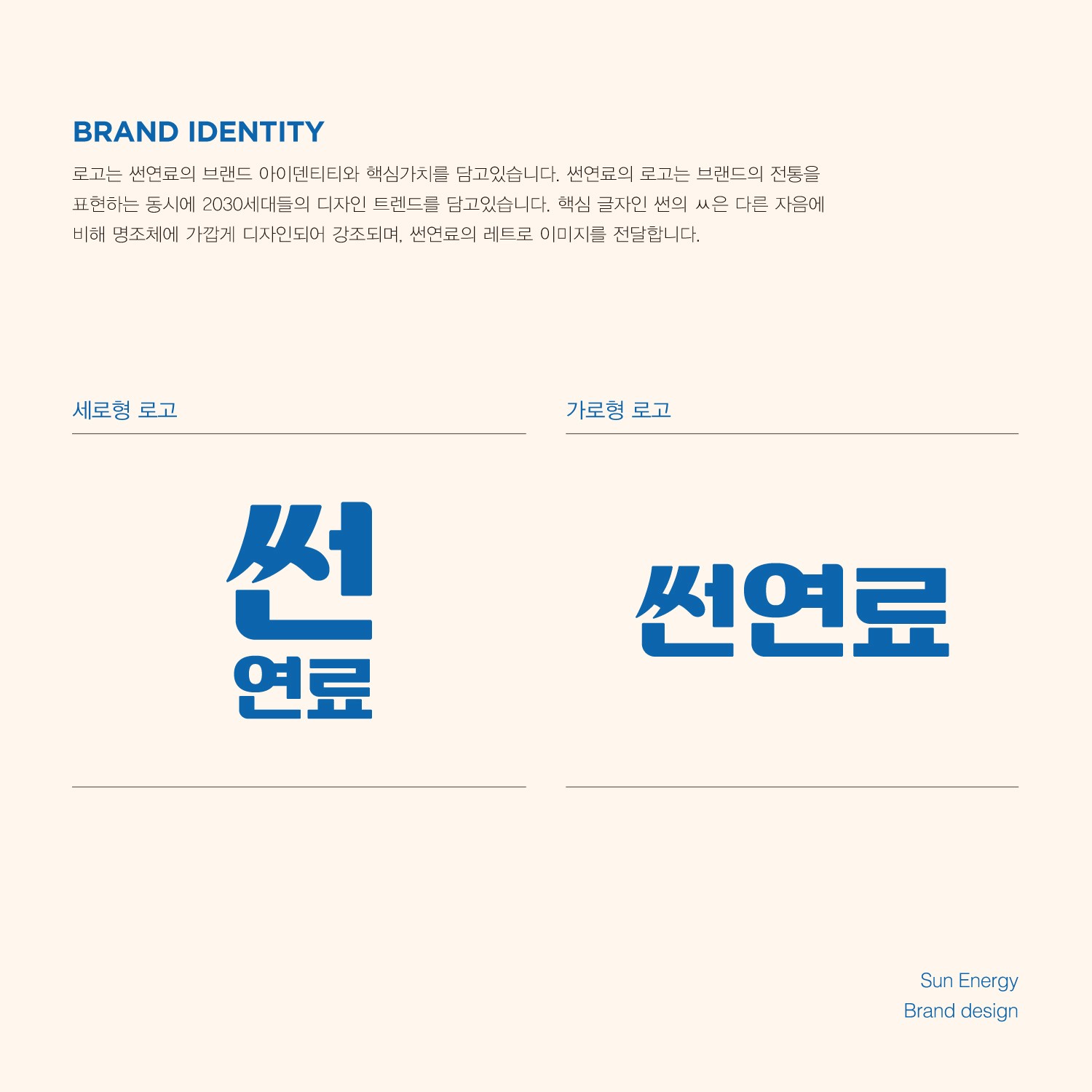 오랜 신뢰와 안정성을 바탕으로 에너지의 본질을 전달하는 브랜드, 썬연료입니다. 직관적인 아이덴티티와 강한 컬러 대비로 기능성과 브랜드 신뢰도를 동시에 강화합니다.