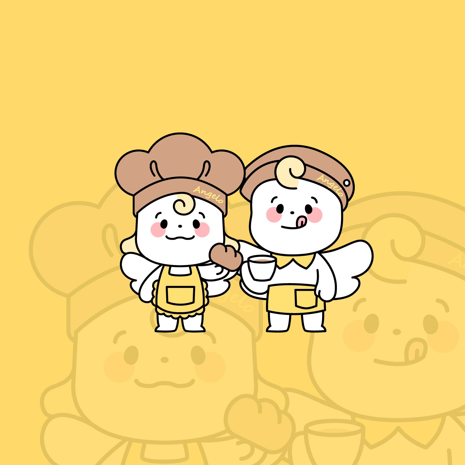 작은 날개를 가진 천사 베이커 캐릭터들로, 사랑을 담아 빵과 커피를 만듭니다. 따뜻한 미소와 정성으로 사람들의 일상에 달콤한 행복을 더해주는 친구들입니다.