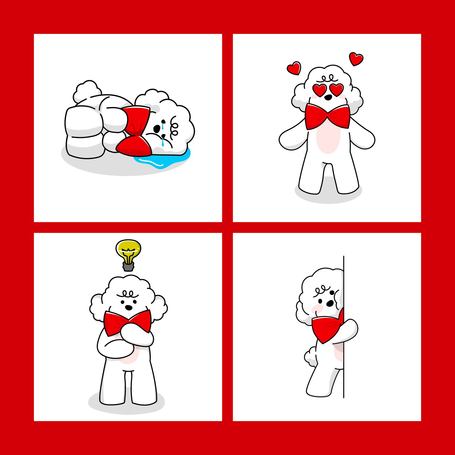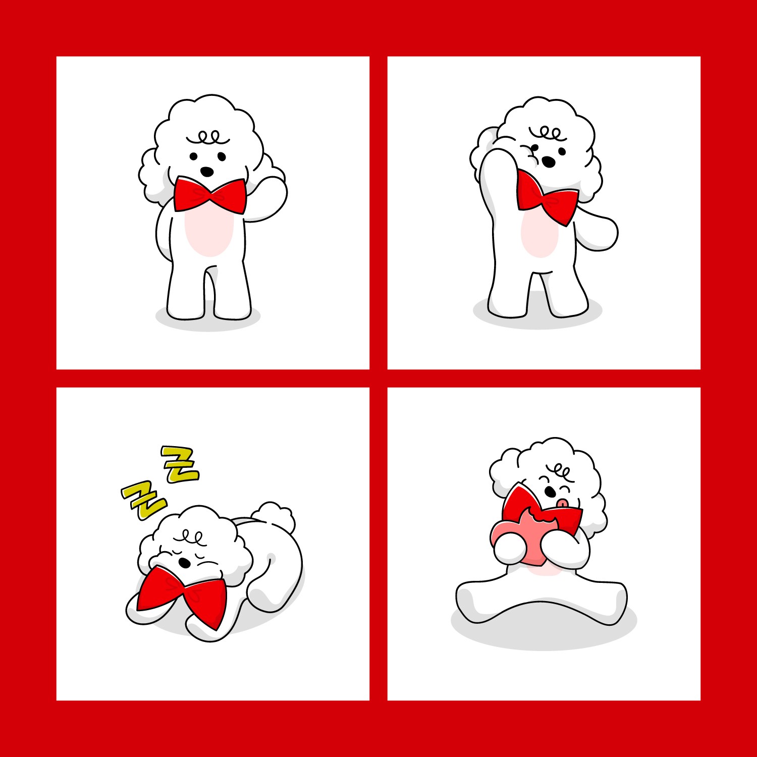 커다란 리본이 트레이드마크인 사랑스러운 강아지 캐릭터로, 다양한 감정을 귀엽게 표현합니다. 친근한 표정과 행동으로 교육, 콘텐츠, 일상 속에서 공감을 이끌어내는 캐릭터입니다.