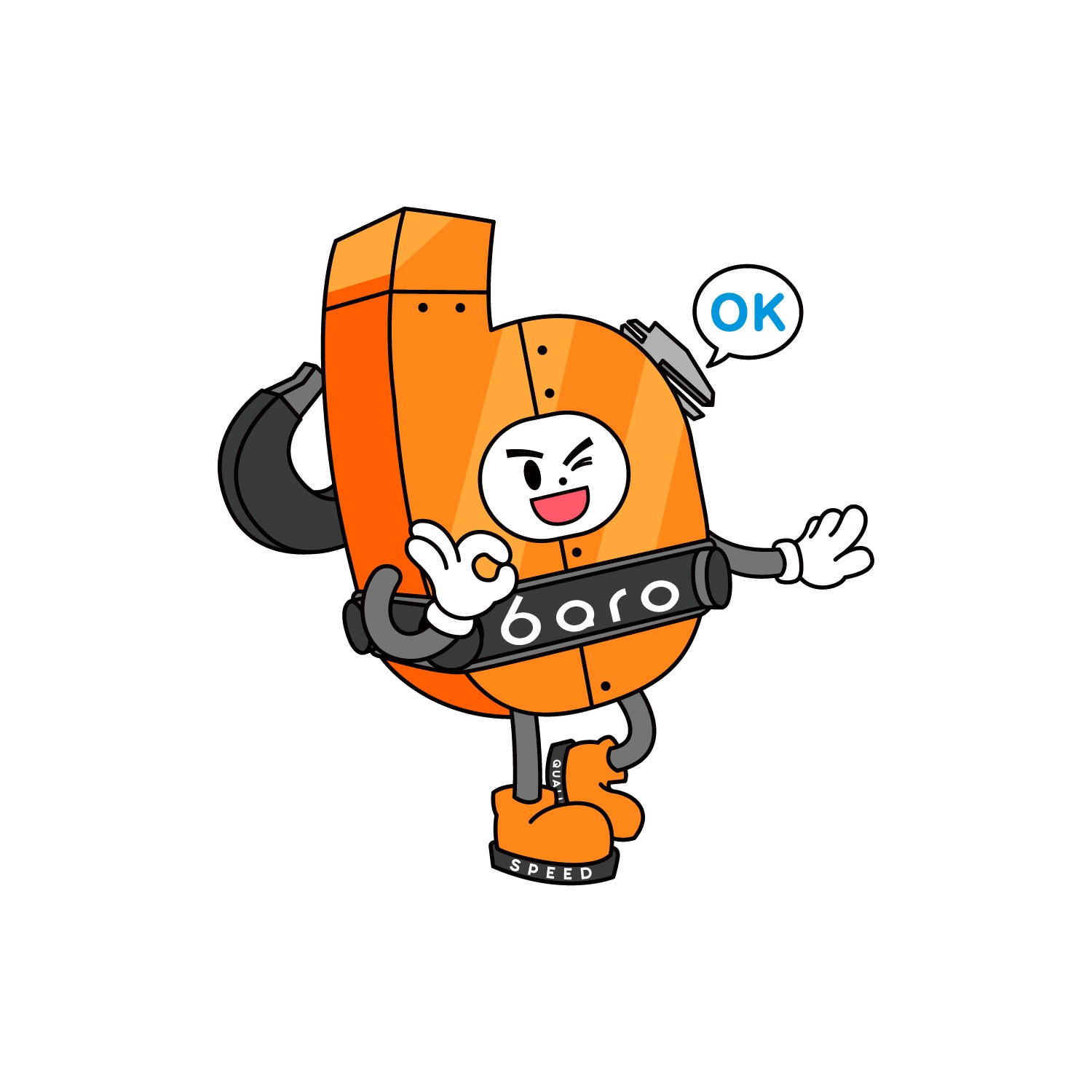 공구를 몸에 장착한 작업 전문가 캐릭터로, 정확하고 빠른 작업을 자랑합니다. 튼튼하고 믿음직한 이미지로 기술력과 전문성을 상징하는 친구입니다.