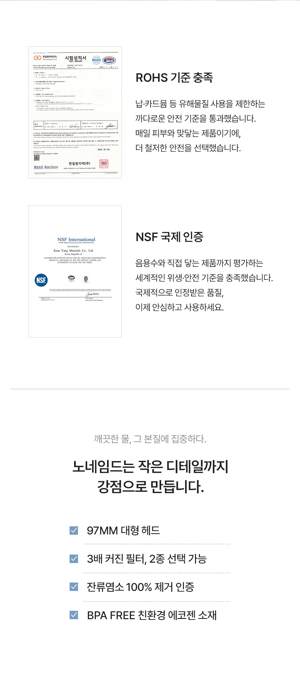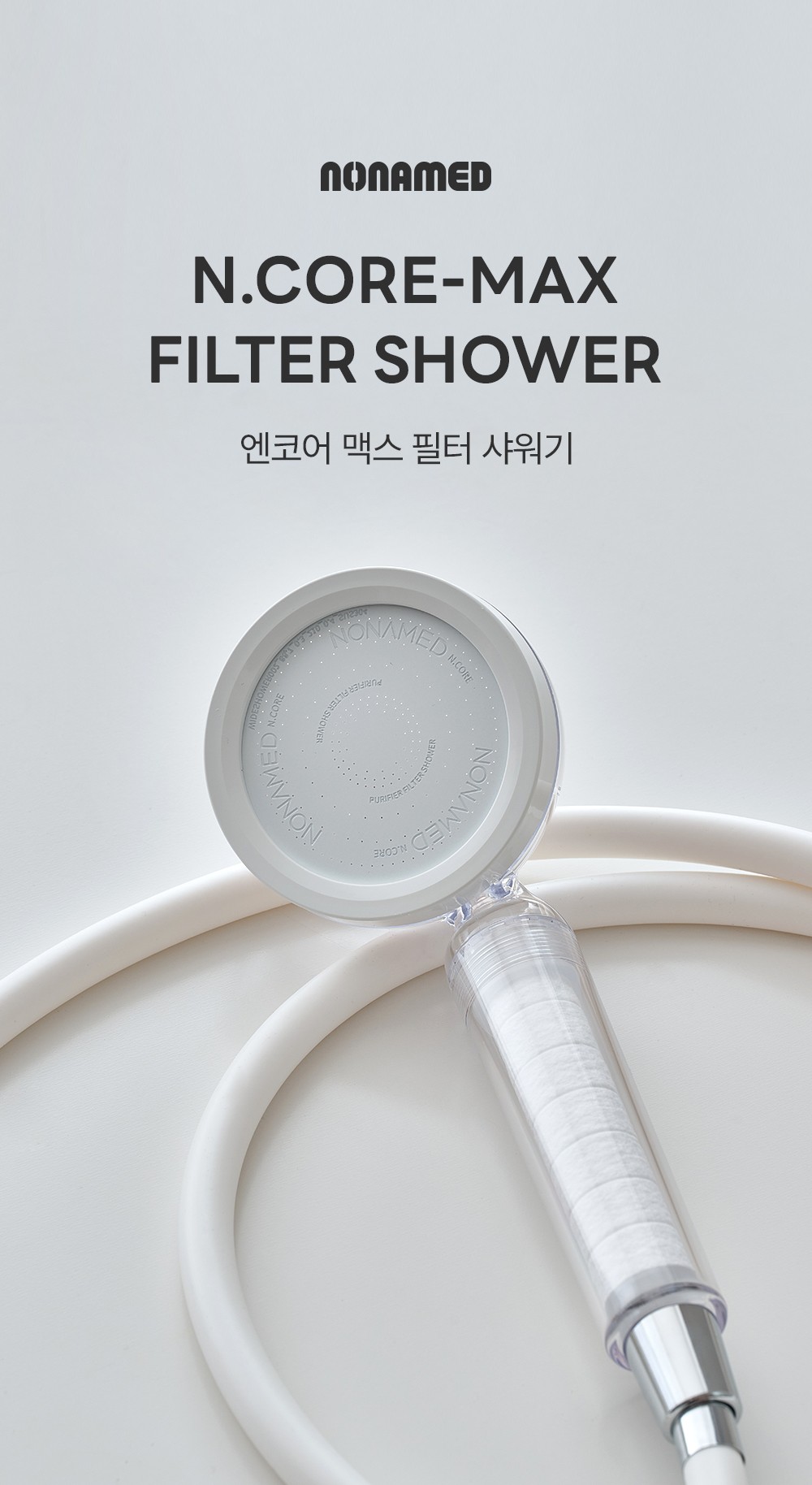 노네임드 필터 샤워기는 일상의 가장 기본적인 순간인 '샤워'를 건강한 휴식으로 전환하는 프리미엄 필터 브랜드의 상세페이지 디자인입니다. 미세 불순물과 잔류 염소를 완벽히 제거하는 독보적인 기술력을 직관적인 인포그래픽과 정갈한 레이아웃으로 시각화하여, 제품에 대한 소비자 신뢰도를 극대화하고 감각적인 욕실 라이프스타일을 제안합니다.