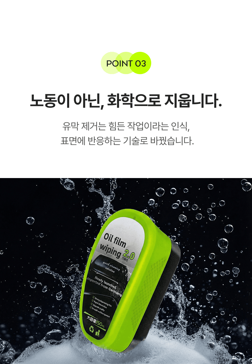 자동차 유리의 유막이 제거되는 시각적 쾌감을 고감도 이미지와 영상으로 구성하여 제품력을 입증했습니다. 불필요한 장식을 배제한 미니멀 브랜딩을 통해 자동차 용품 시장 내 프리미엄 이미지를 구축하였으며, 실용성과 전문성을 동시에 전달하여 높은 구매 전환과 브랜드 신뢰를 이끌어냈습니다.