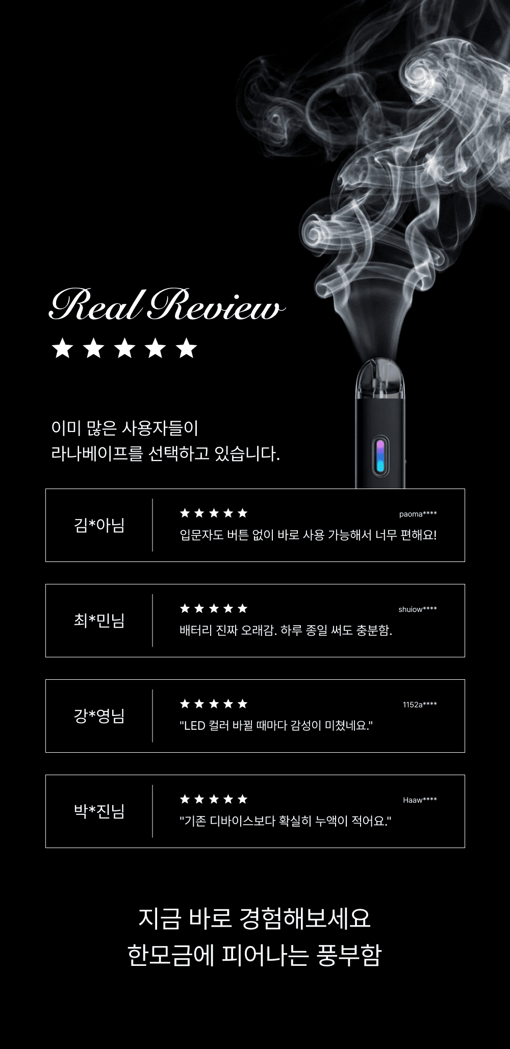 맛의 표현력과 출력 안정성이라는 전자담배의 핵심 요소를 극대화하기 위해 설계된 디바이스 상세페이지입니다. 디자인·성능·사용 편의성까지 균형 있게 강조해 제품의 프리미엄 포지션을 구축했습니다.