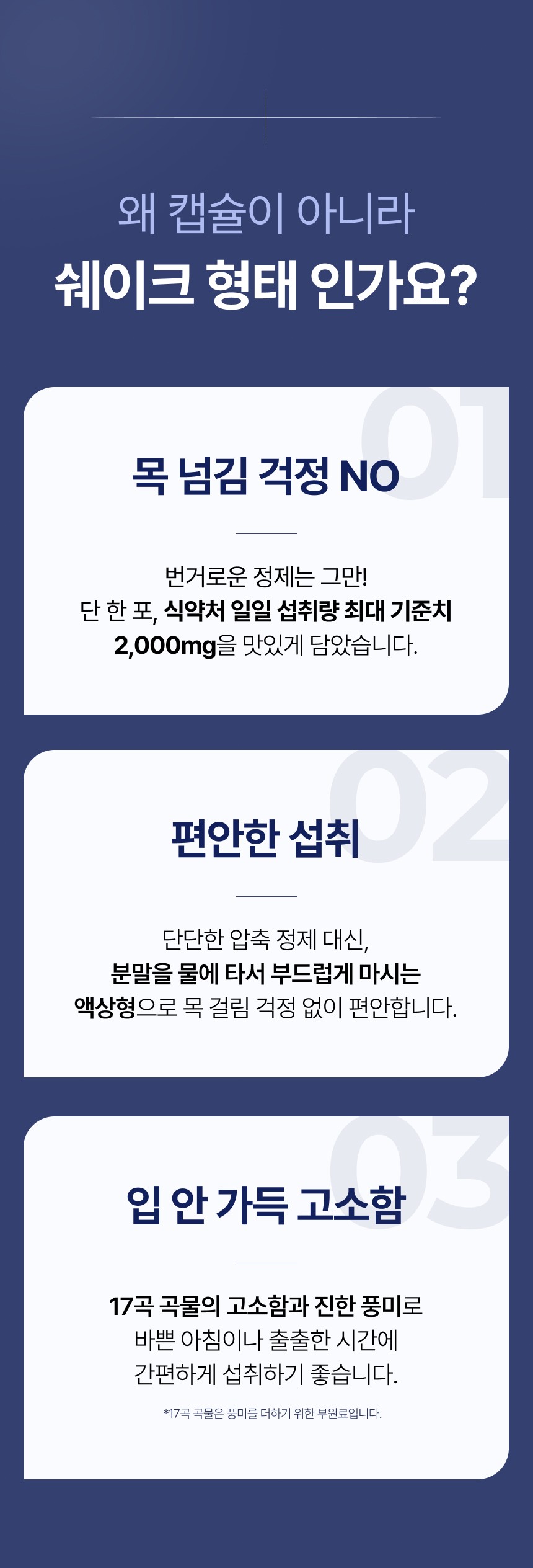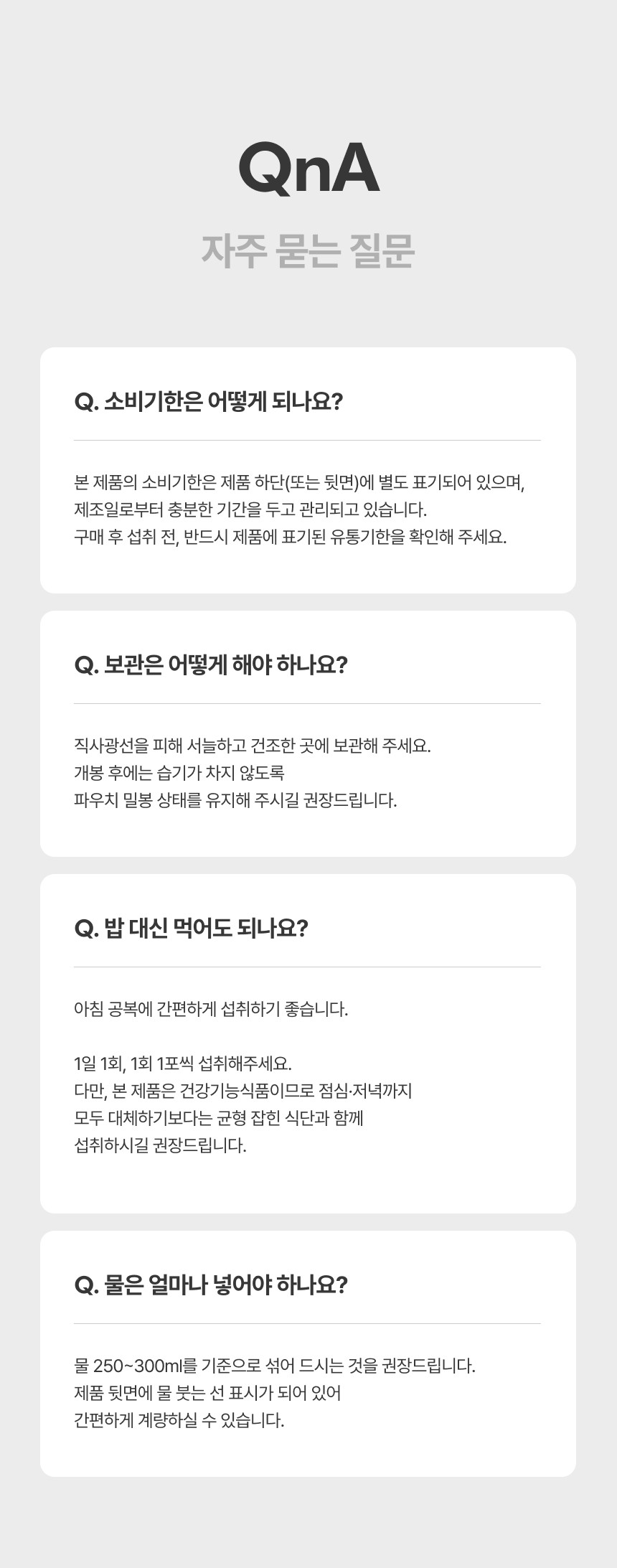 MSM 성분의 기능성과 고소한 맛의 질감을 강조한 고감도 연출 컷을 활용해 제품의 차별성을 입증했습니다. 불필요한 수식어 대신 식약처 인증 성분과 1일 섭취 함량을 강조한 직관적인 인포그래픽 레이아웃을 구축하였으며, 간편한 음용 방법을 소구하여 건강한 생활 습관 아이템으로 브랜드를 성공적으로 포지셔닝했습니다.