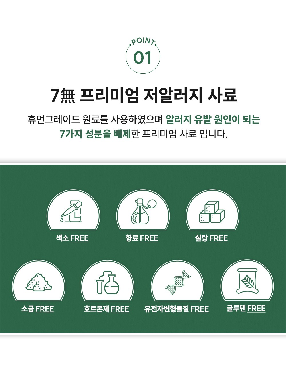 엄선된 휴먼그레이드 원료를 사용해 반려견에게 필요한 최적의 영양 밸런스를 제공하는 프리미엄 사료 상세페이지입니다. 알러지 유발 가능성을 낮춘 식재료 구성과 균형 잡힌 아미노산 배합을 시각화하였으며, 매일 먹는 한 끼를 통해 반려견의 건강과 활력을 지켜주는 브랜드의 진정성 있는 가치를 전달합니다.