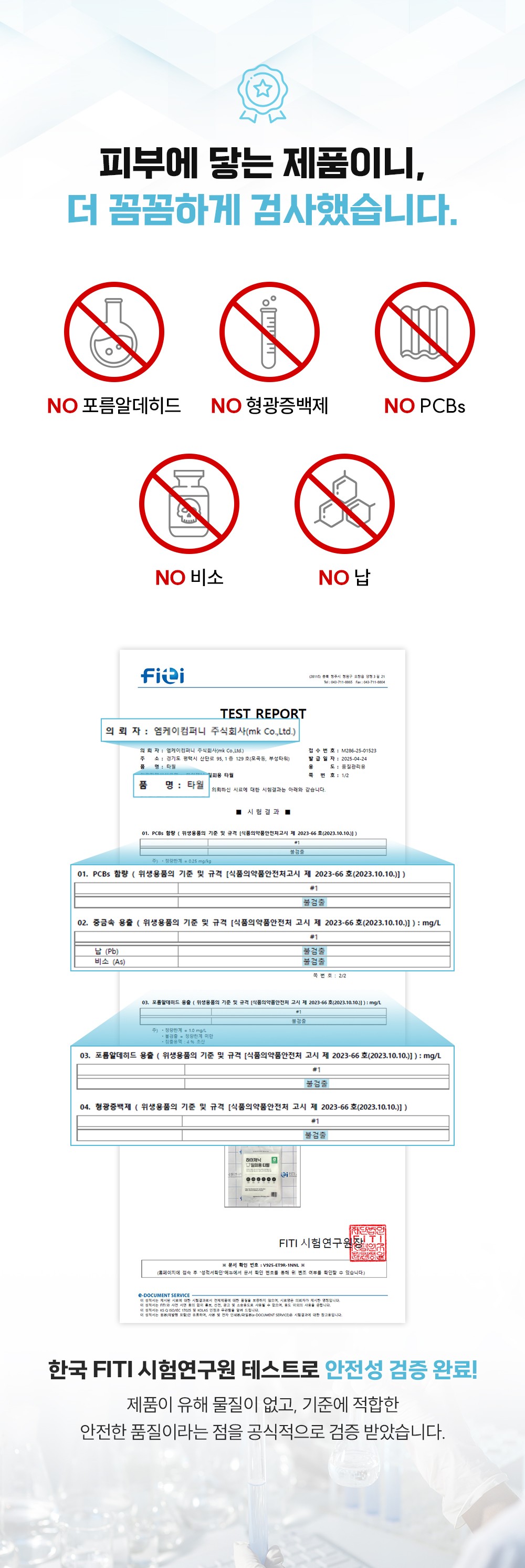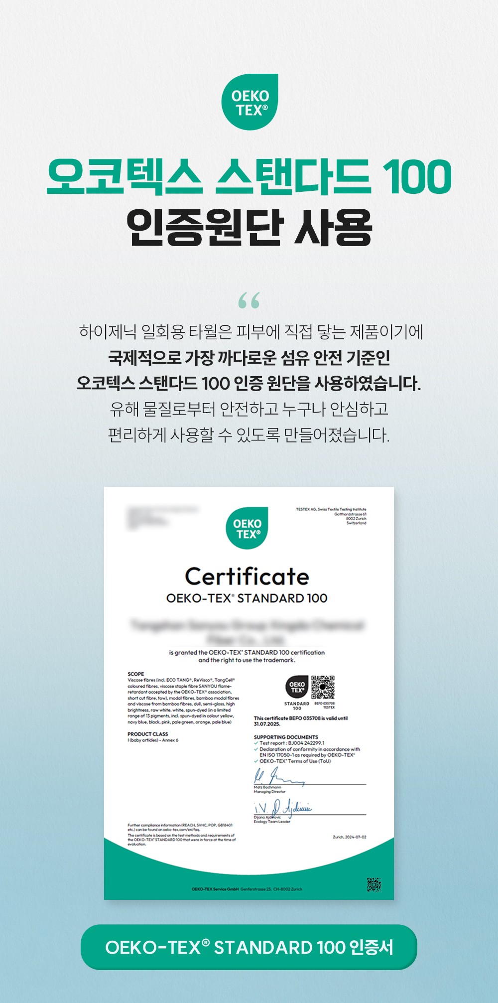 형광증백제 불검출 인증과 탄탄한 원단의 질감을 강조한 고감도 비주얼을 전면에 배치하여 제품의 안전성을 입증했습니다. 불필요한 수식어 대신 100% 식물 유래 원단 등 핵심 소재 정보를 직관적인 레이아웃으로 구축하였으며, 세안 후 피부 자극을 최소화하는 새로운 클렌징 습관으로서의 가치를 감각적으로 소구합니다.