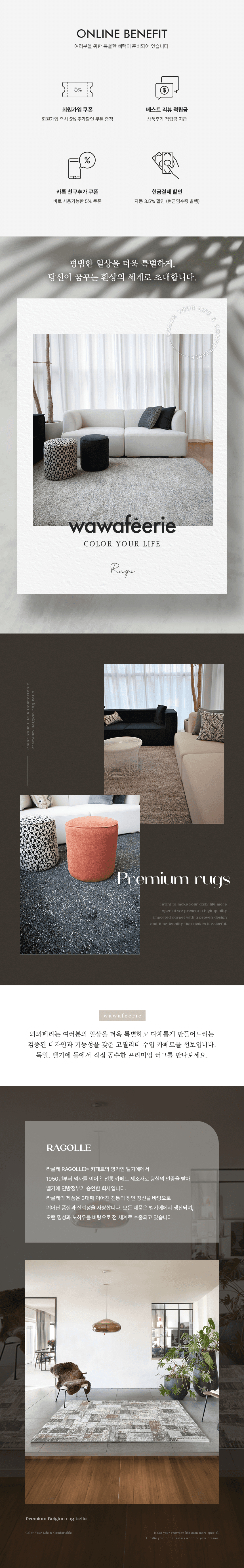 사계절 내내 쾌적하게 사용할 수 있는 먼지 없는 워셔블 러그 상세페이지입니다. 미세 플라스틱 걱정 없는 안전한 소재와 탄탄한 직조감을 시각화하였으며, 세탁기 사용이 가능한 압도적인 관리 편의성을 통해 일상 속 공간의 가치와 위생을 동시에 높여주는 인테리어 솔루션을 전달합니다.