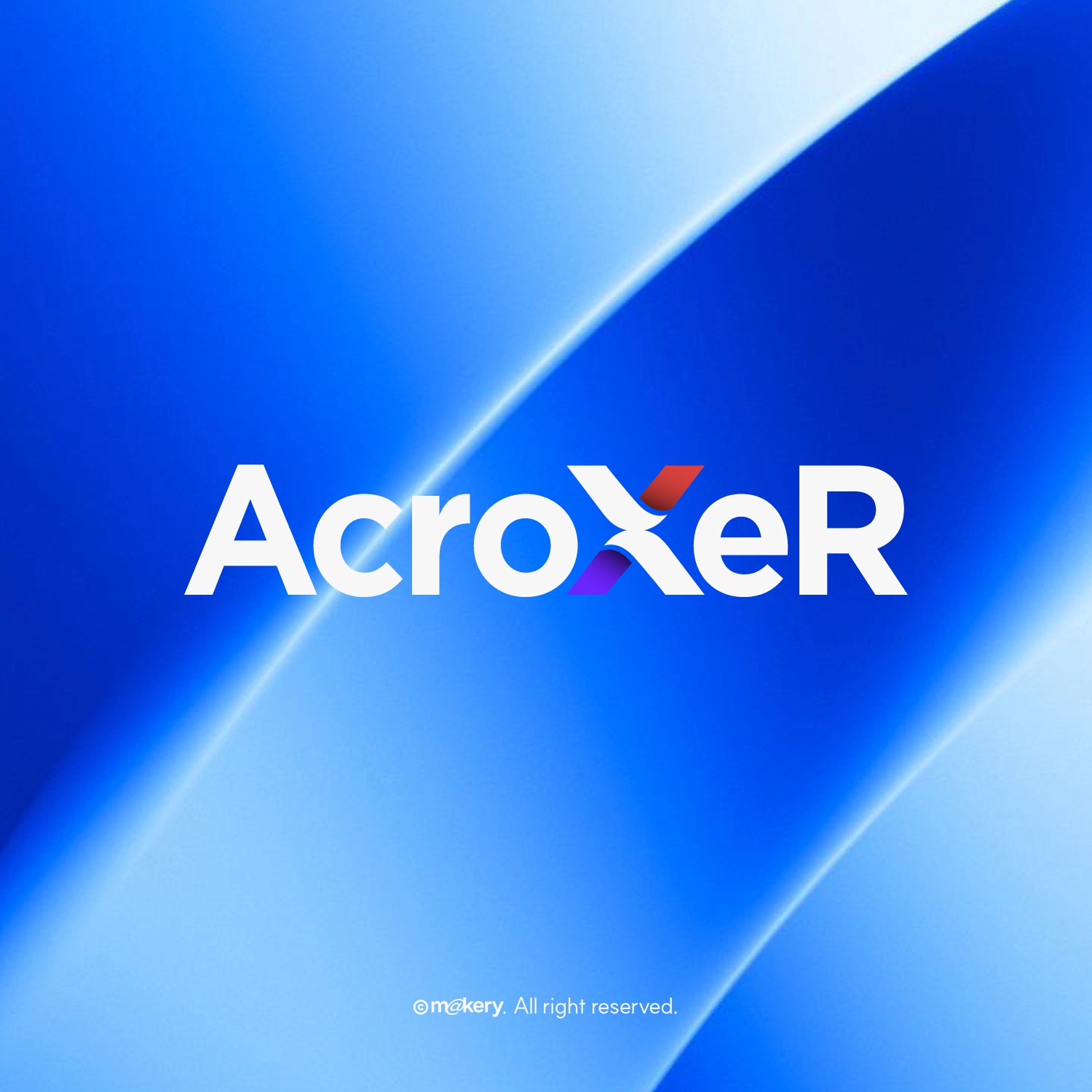 AcroXeR는 혁신 기술을 기반으로 새로운 가능성을 확장하는 IT 기업입니다. 포인트 컬러가 강조된 ‘X’ 구조는 교차와 확장을 의미하며, 기술 간 융합과 진보적인 방향성을 시각적으로 표현합니다.