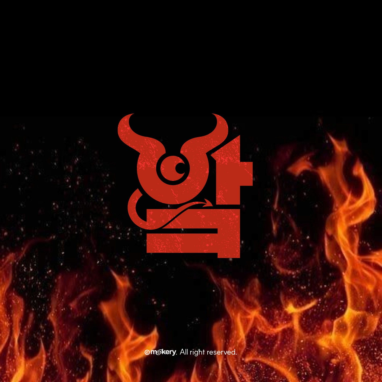 소의 형상을 결합한 강렬한 타이포그래피와 레드 컬러를 통해 고기 브랜드의 본질적인 에너지와 임팩트를 극대화했습니다. 불과 열기를 연상시키는 비주얼로 전문성과 프리미엄 이미지를 강조합니다.