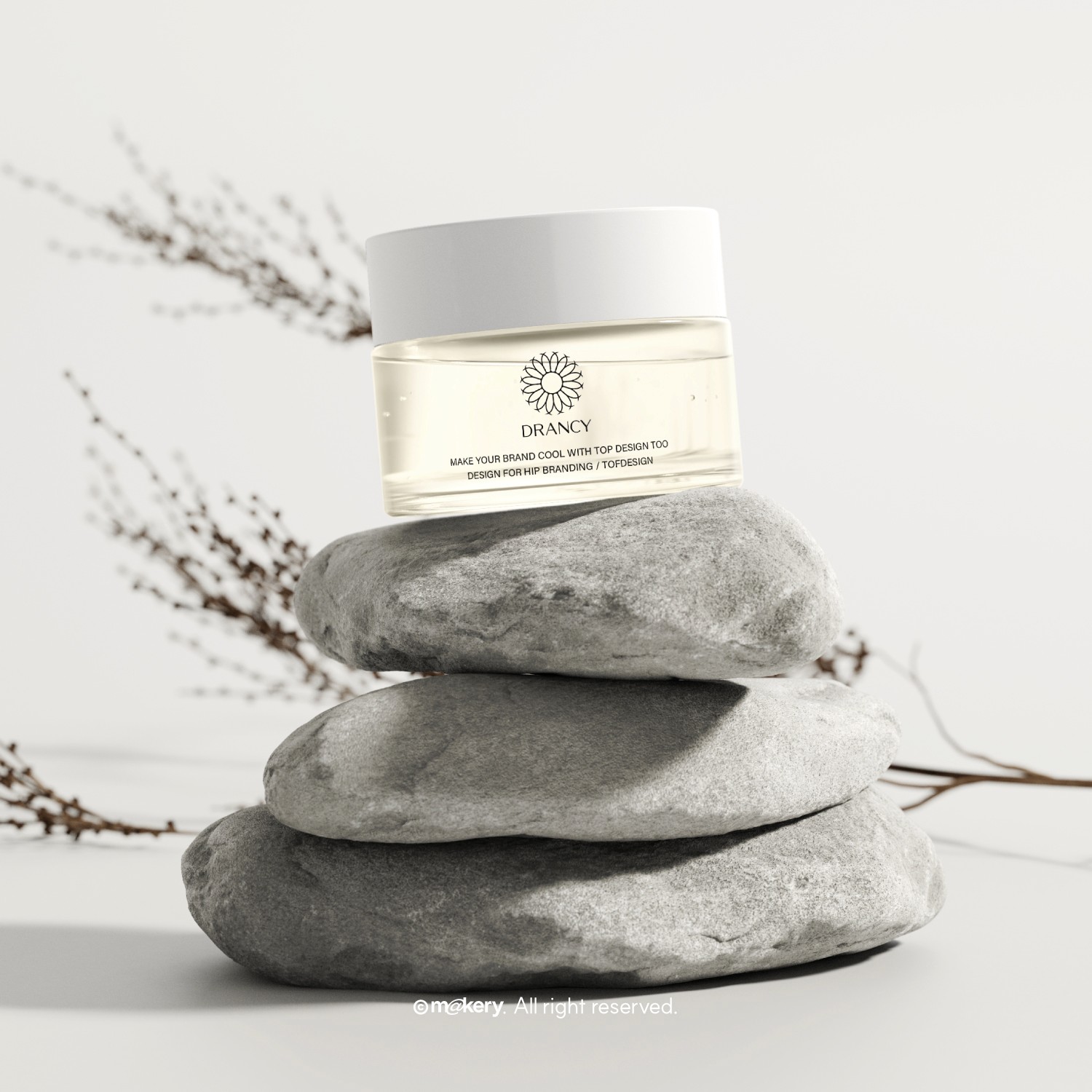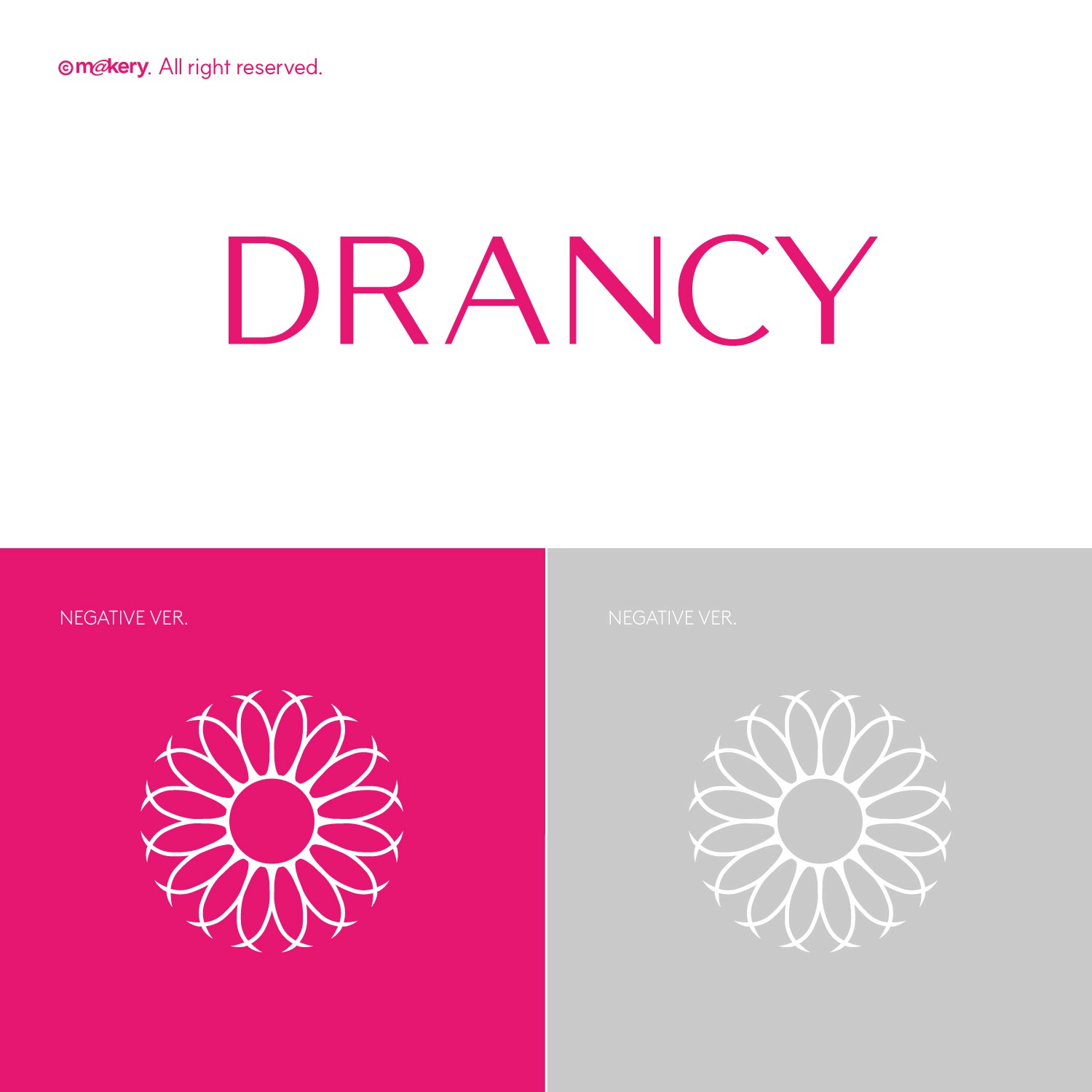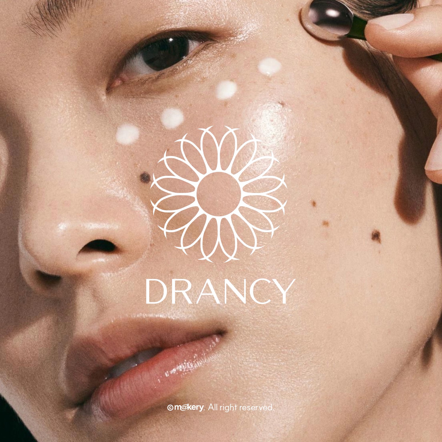 DRANCY는 자연 유래 성분을 기반으로 한 스킨케어 브랜드입니다. 플라워 모티프와 부드러운 타이포그래피를 활용하여 깨끗하고 신뢰감 있는 이미지를 표현합니다.
