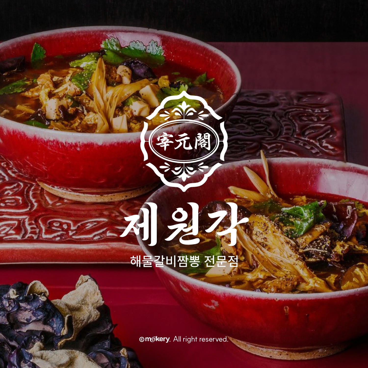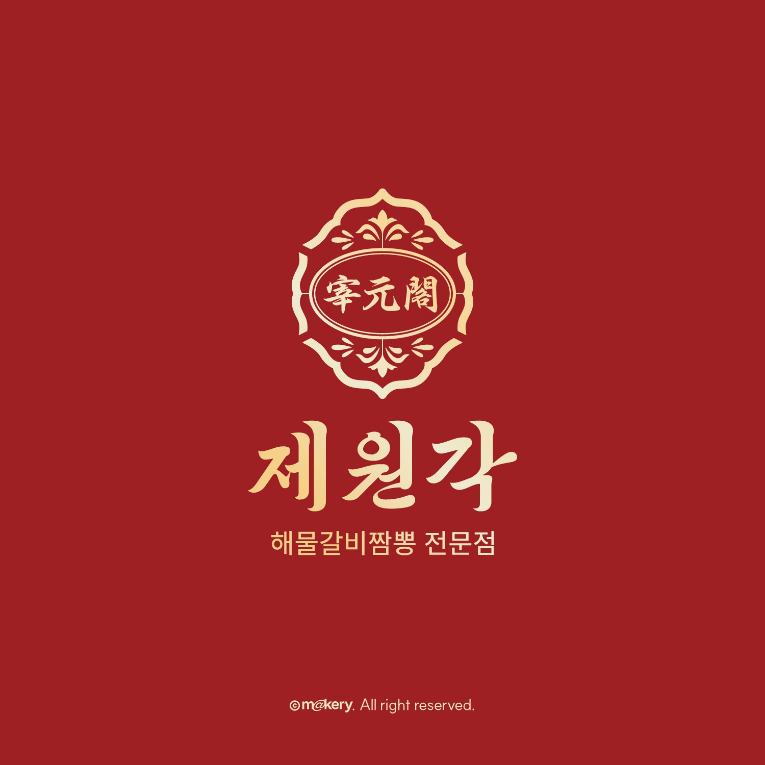전통 문양과 한자 로고를 활용하여 클래식하고 권위 있는 중식 브랜드 이미지를 표현했습니다. 장식적인 요소를 통해 고급스러운 다이닝 경험을 강조합니다.