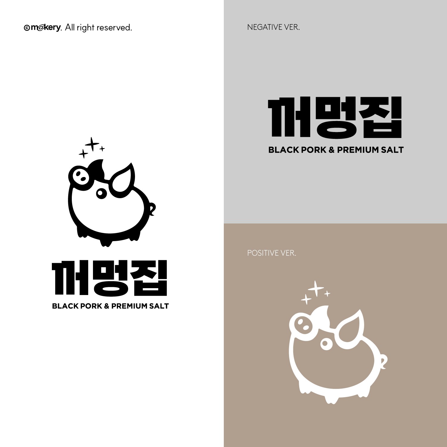 귀여운 캐릭터 심볼을 활용해 친근하고 대중적인 브랜드 이미지를 구축했습니다. 직관적인 타이포와 함께 캐주얼 외식 브랜드로서의 접근성을 높였습니다.