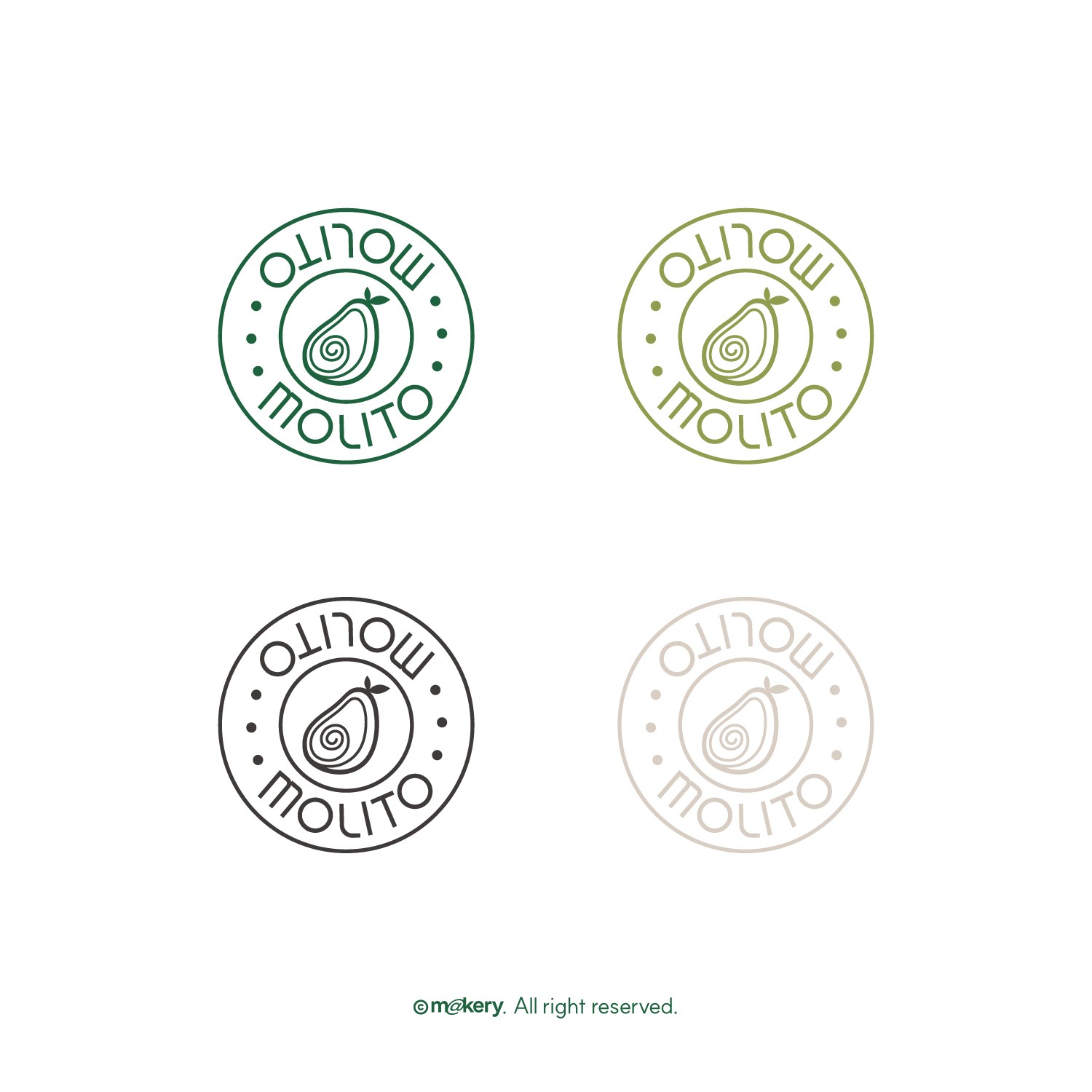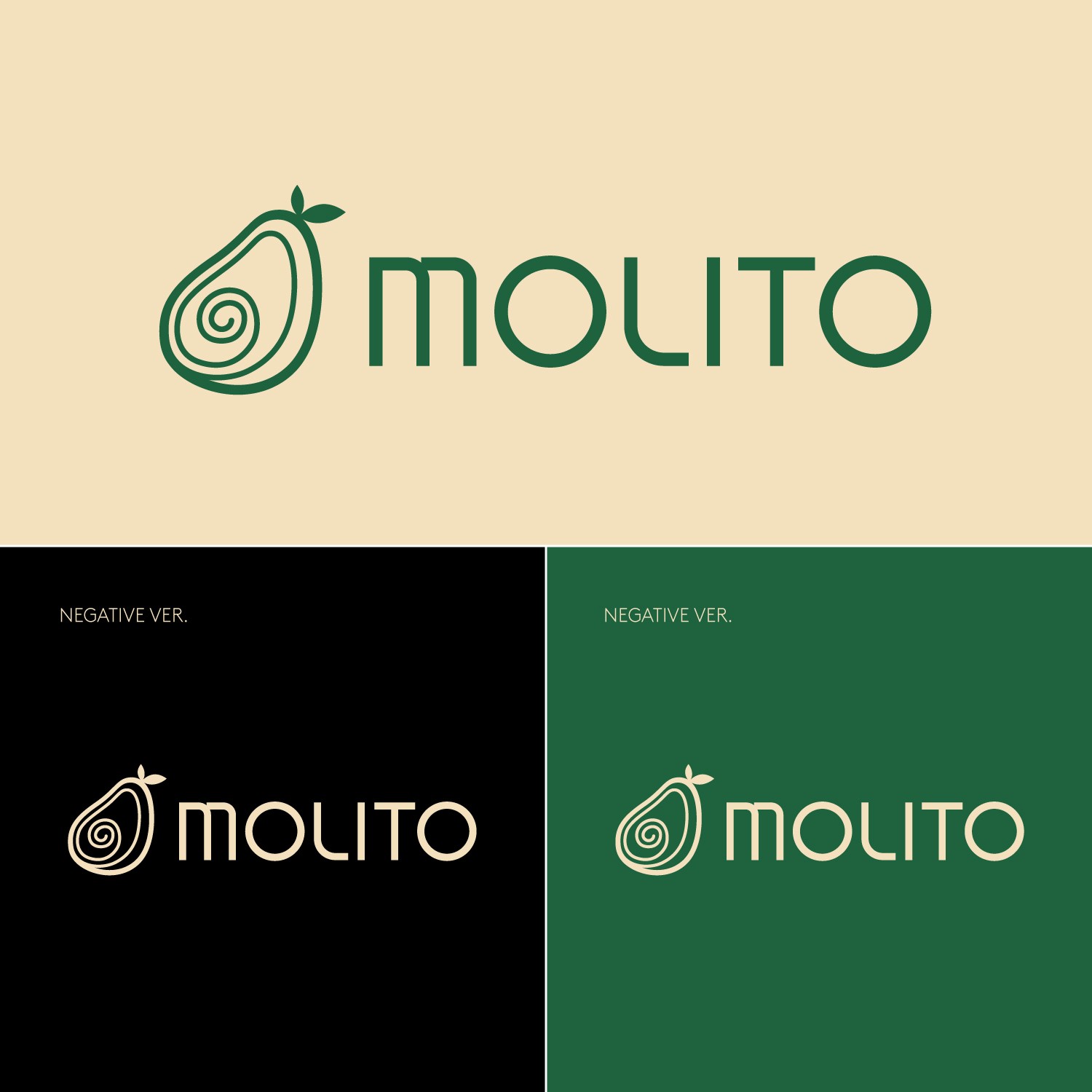 아보카도를 모티브로 한 심볼과 미니멀 타이포를 결합하여 건강하고 트렌디한 브랜드 이미지를 구축했습니다. 신선함과 라이프스타일 감성을 강조합니다.