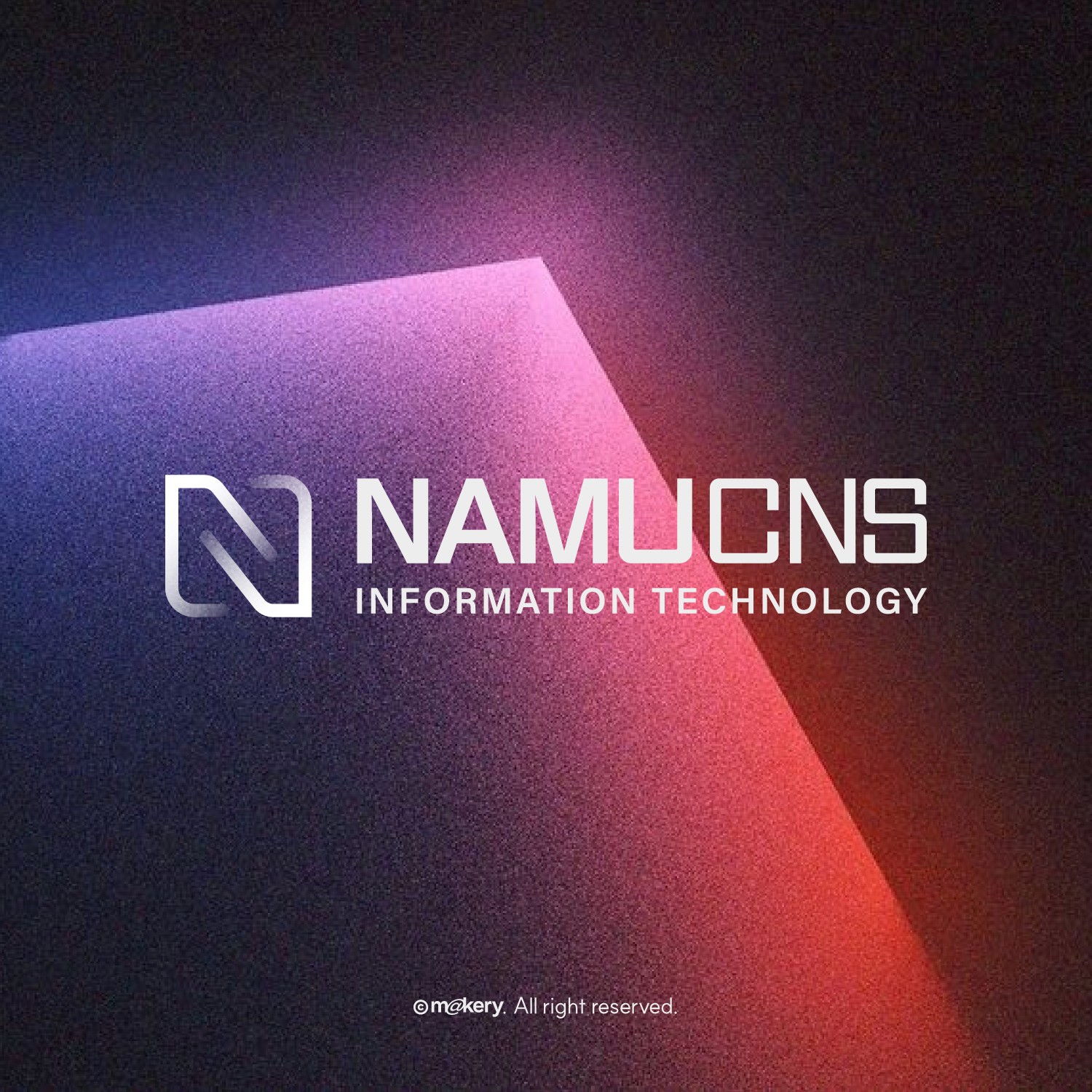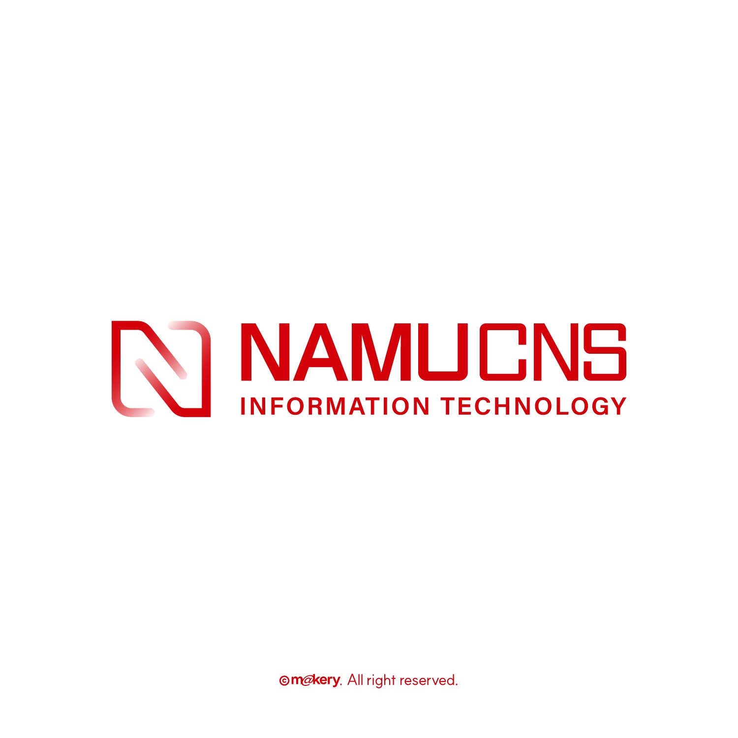 NAMUCNS는 안정적인 정보 처리와 네트워크 시스템을 기반으로 한 IT 기업입니다. 구조적인 심볼과 균형 잡힌 타이포그래피를 통해 신뢰성과 기술적 완성도를 강조합니다.