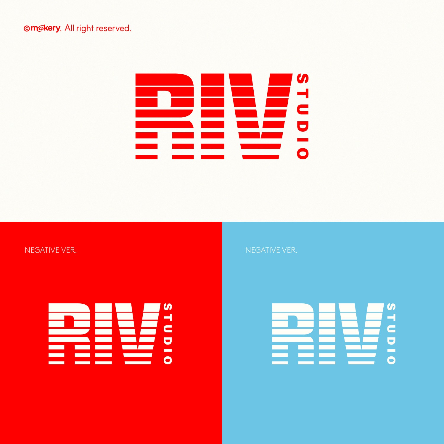 RIV는 콘텐츠 제작과 비주얼 아트를 기반으로 한 크리에이티브 스튜디오입니다. 반복되는 라인 구조의 로고는 빛과 프레임, 그리고 레이어를 상징하며, 영상 및 이미지 제작의 기술적 프로세스를 시각적으로 표현합니다.