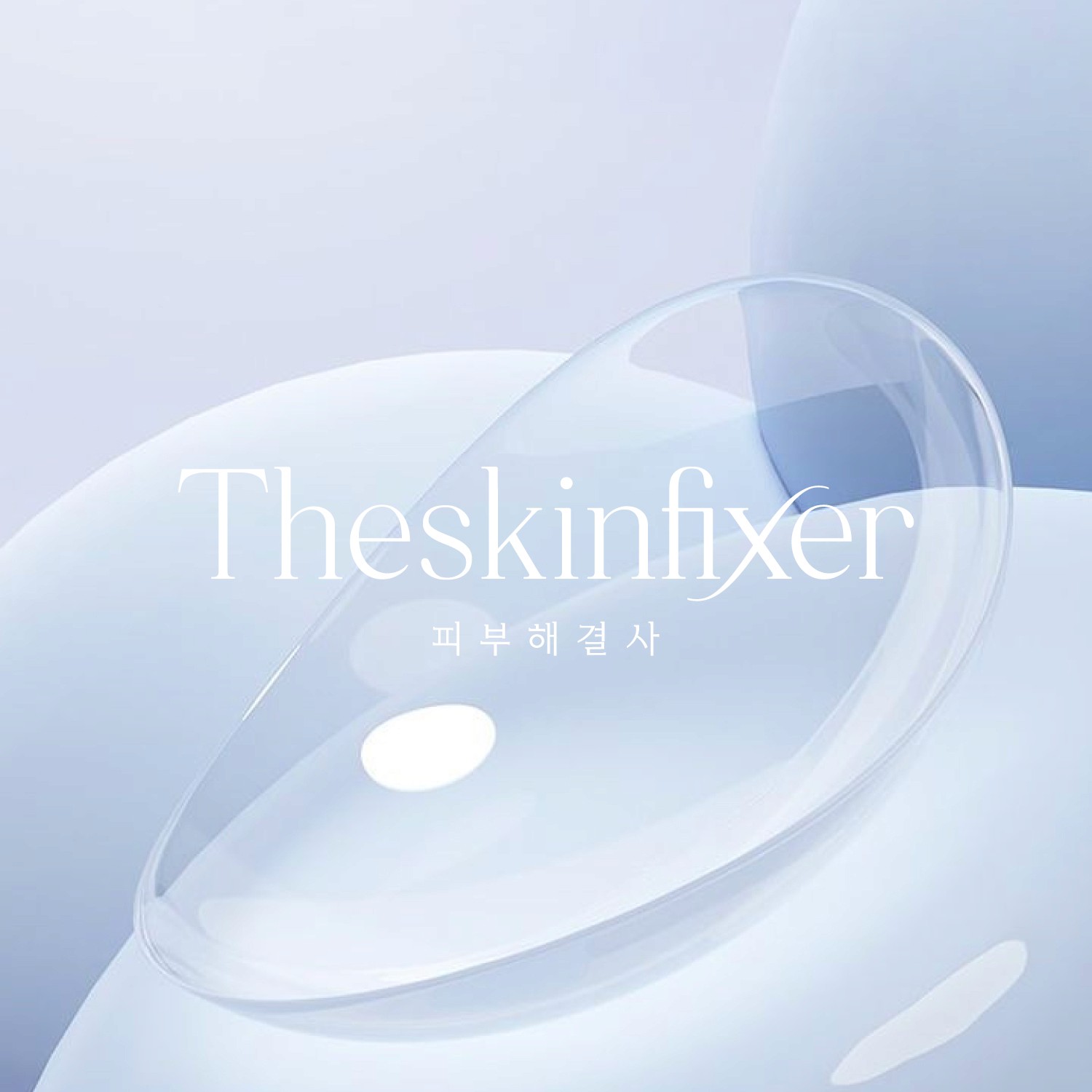 Theskinfixer는 피부 고민을 섬세하게 케어하는 스킨케어 브랜드입니다. 투명하고 유려한 형태의 비주얼을 통해 깨끗함과 전문적인 솔루션 이미지를 직관적으로 전달합니다.