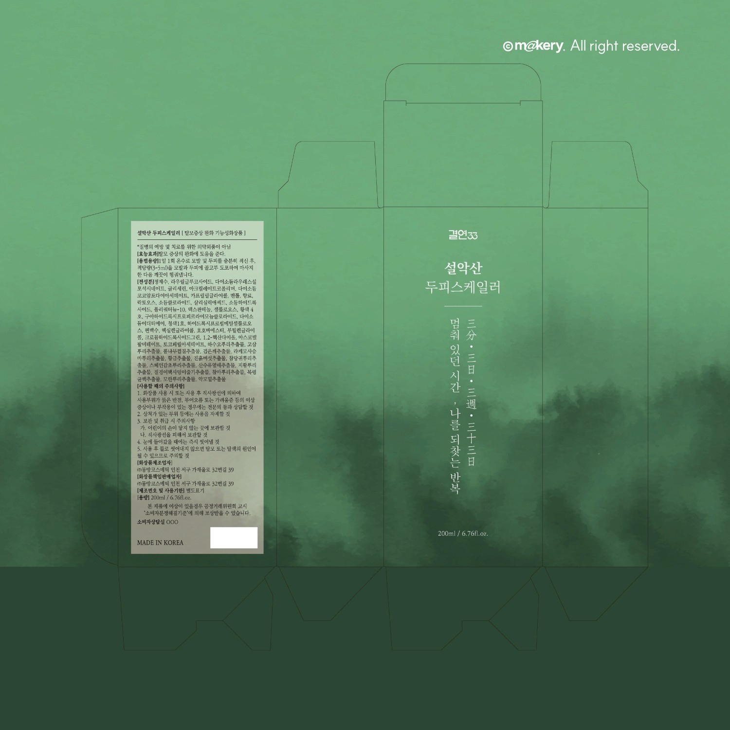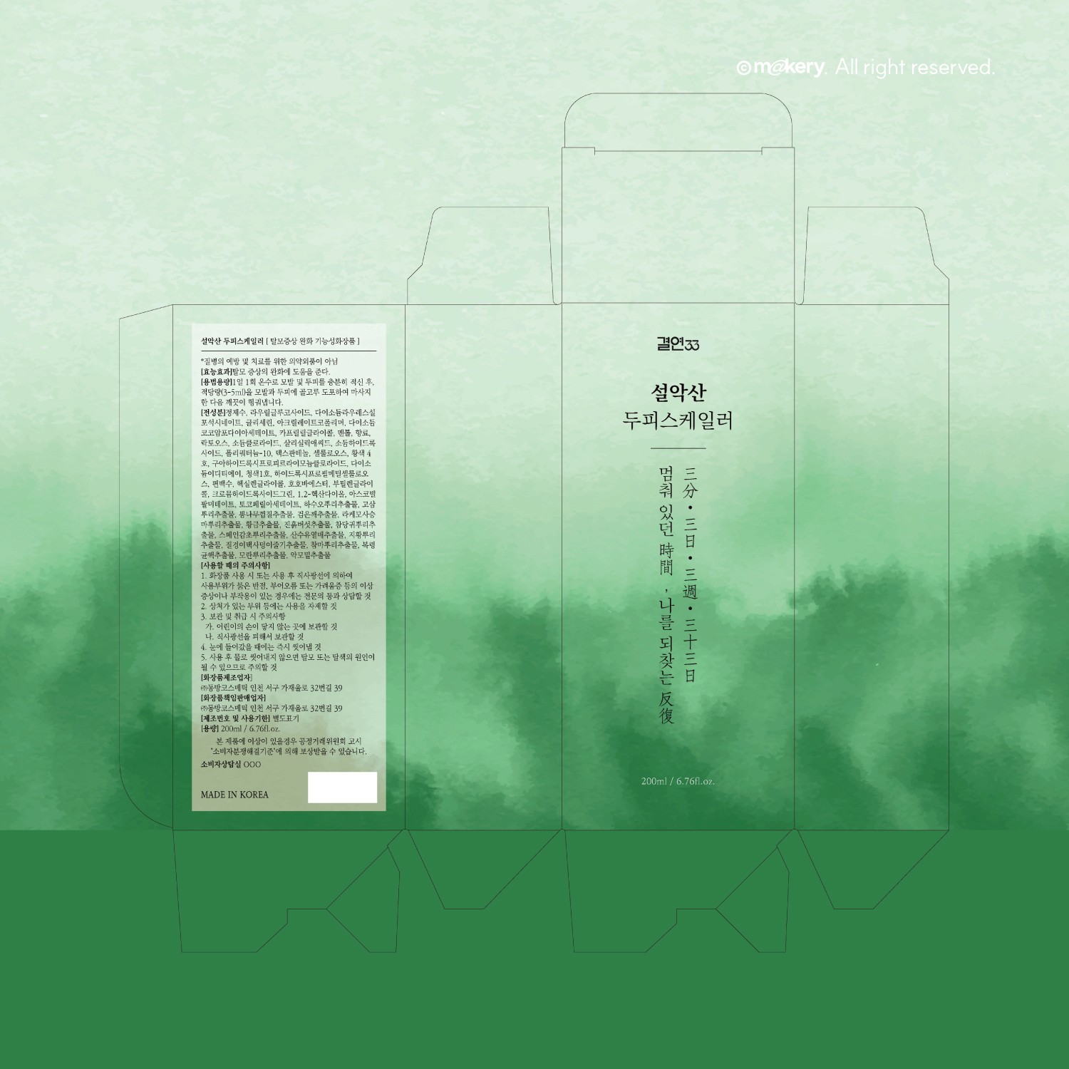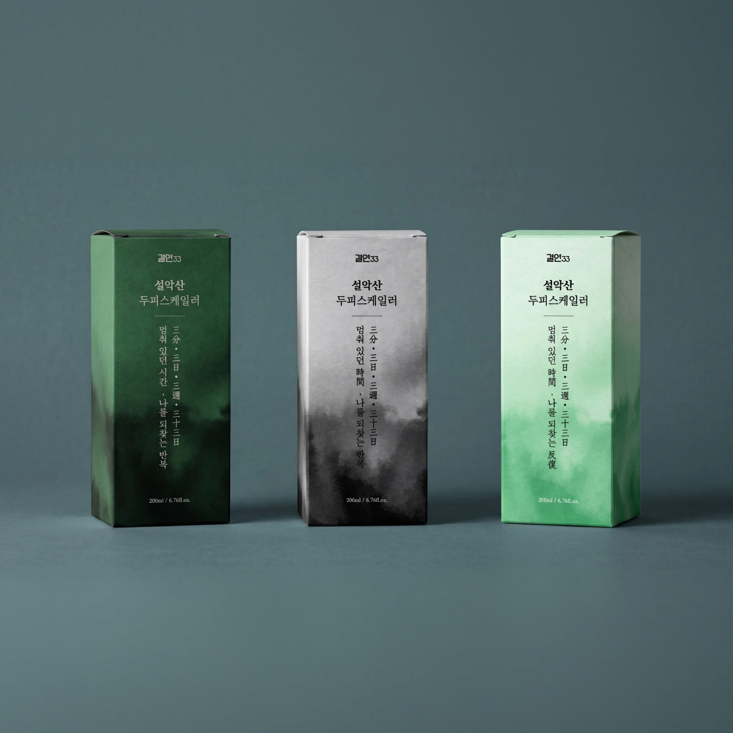 수묵화 스타일의 그래픽과 절제된 타이포를 통해 자연주의 콘셉트를 강조한 패키지입니다. 동양적인 감성과 프리미엄 이미지를 동시에 전달합니다.