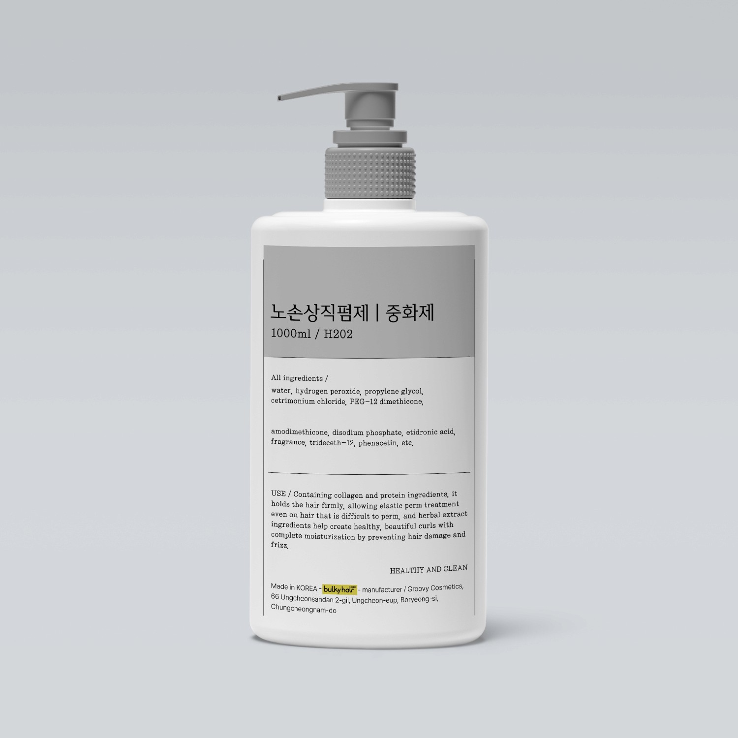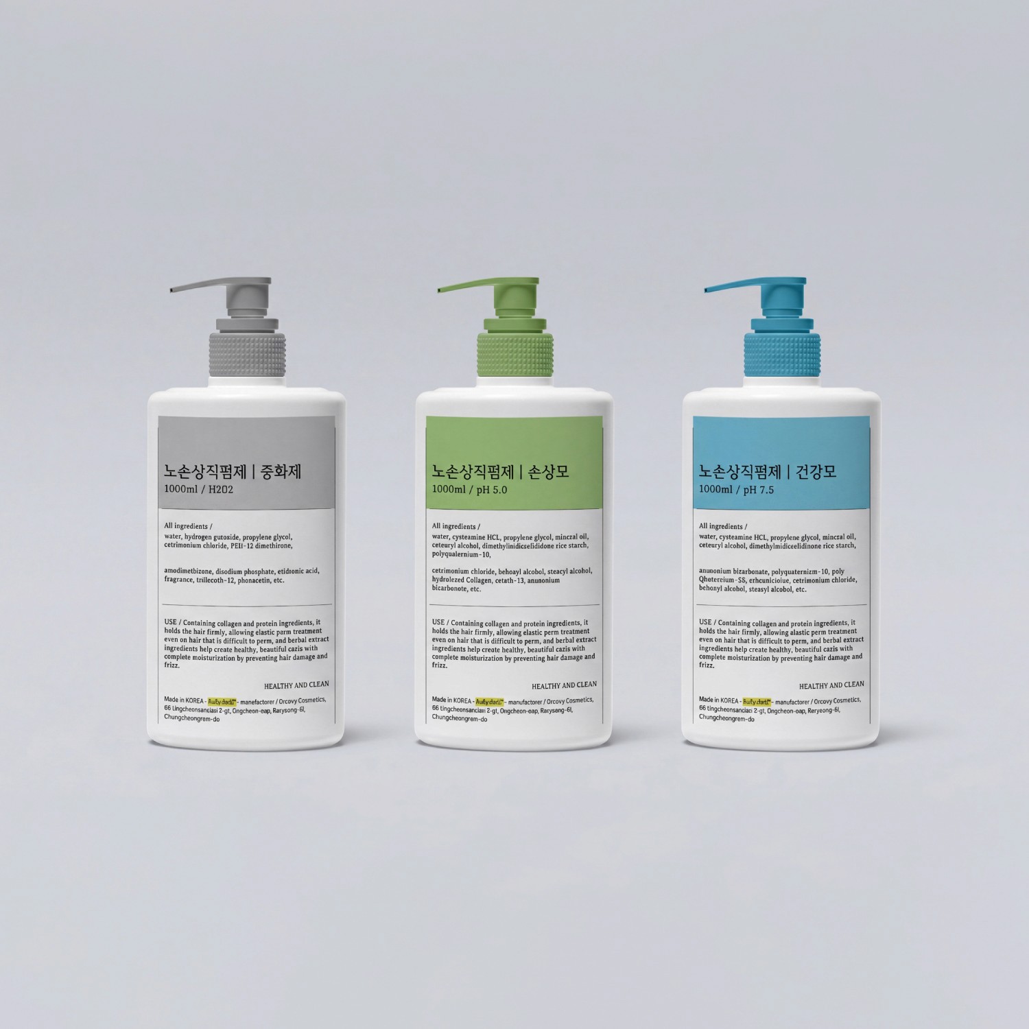 텍스트 중심의 클린한 라벨 디자인으로 전문적인 헤어 제품 이미지를 강조했습니다. 성분과 기능 전달에 집중한 실용적인 디자인입니다.