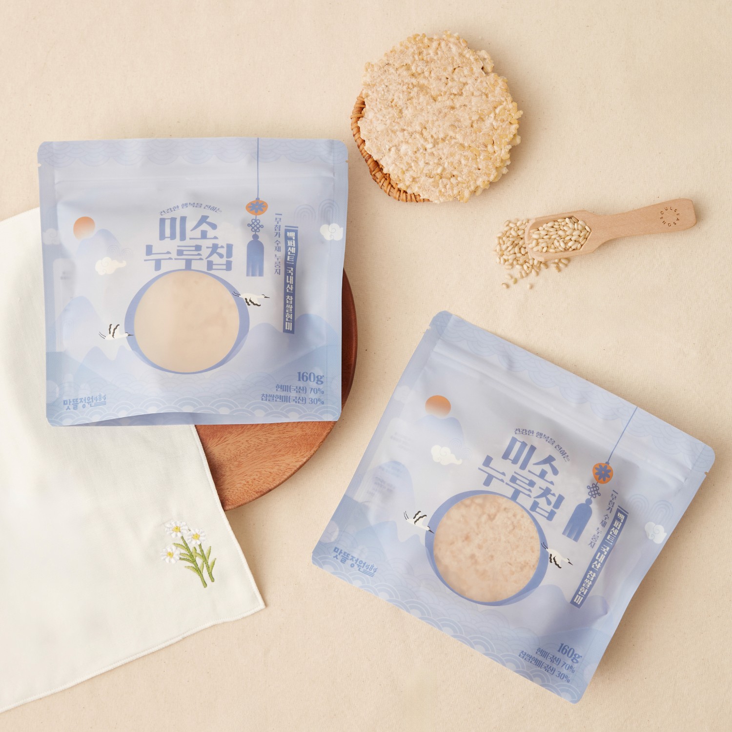 따뜻한 파스텔 컬러와 전통적인 그래픽 요소를 접목하여 한국적인 감성을 현대적으로 풀어낸 패키지입니다. 부드러운 톤으로 건강 간식 이미지를 강화하였습니다.