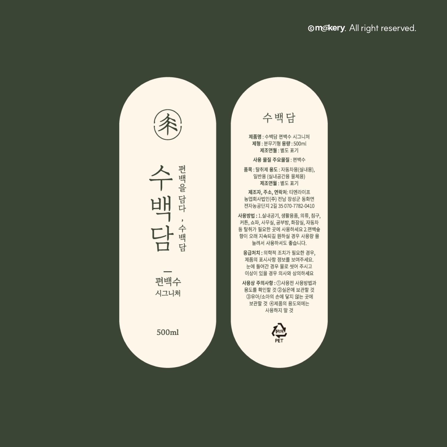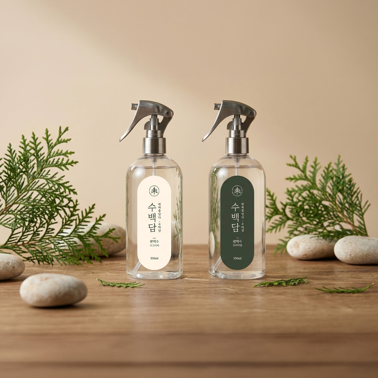 자연을 연상시키는 컬러와 간결한 라벨 구조를 통해 친환경 이미지를 강조한 브랜드입니다. 여백과 소재감을 활용해 안정감 있는 디자인을 완성했습니다.