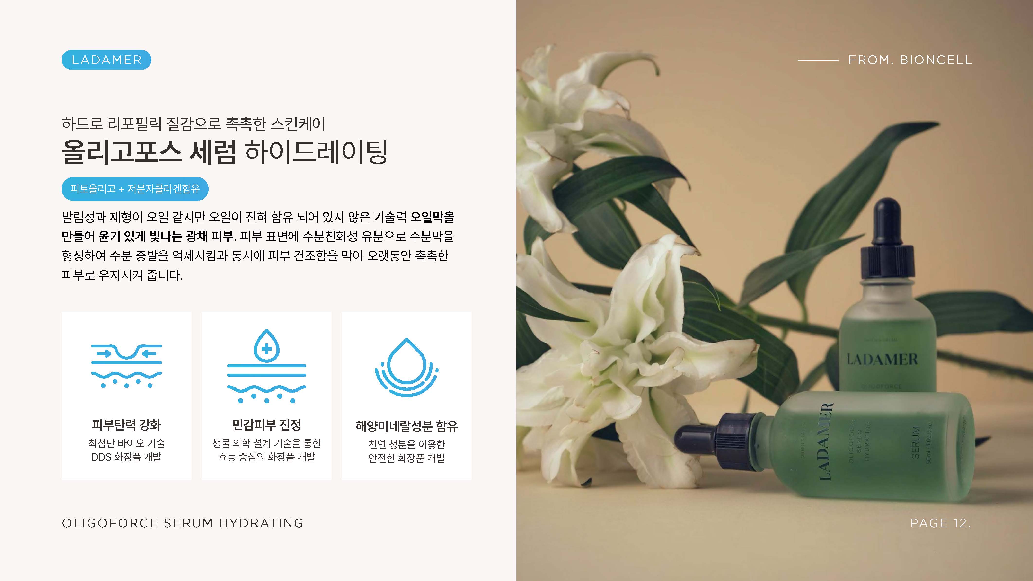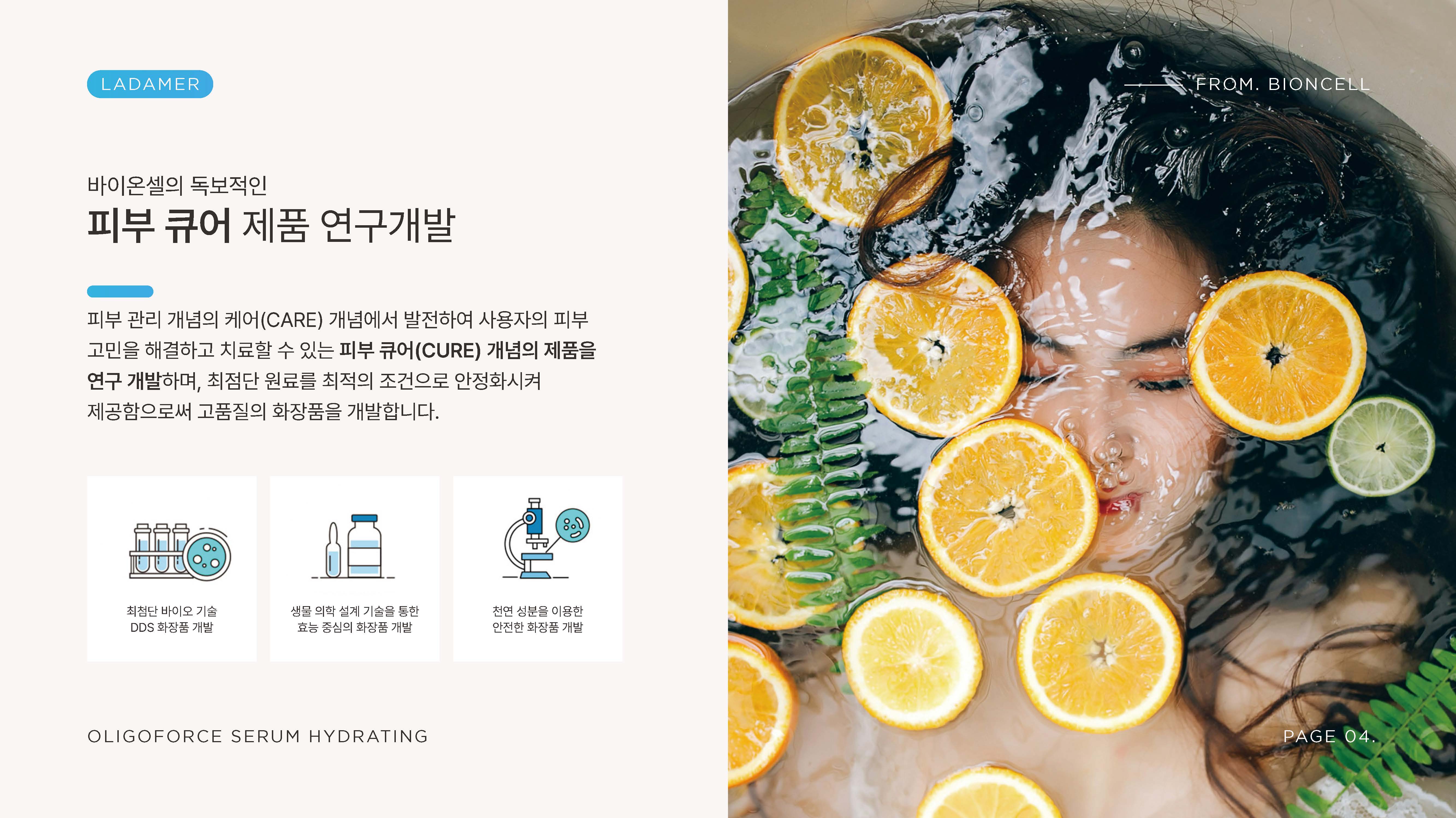 라다메르 브랜드의 제품 경쟁력과 기술력을 효과적으로 전달하기 위한 제품 소개 PPT 디자인 프로젝트입니다. 코스메슈티컬 컨셉과 핵심 성분, 기능적 강점을 중심으로 콘텐츠를 재구성하고 시각적으로 구조화했습니다. 클린하고 신뢰감 있는 디자인 톤을 기반으로 전문성과 프리미엄 이미지를 동시에 전달하는 데 중점을 두었습니다.