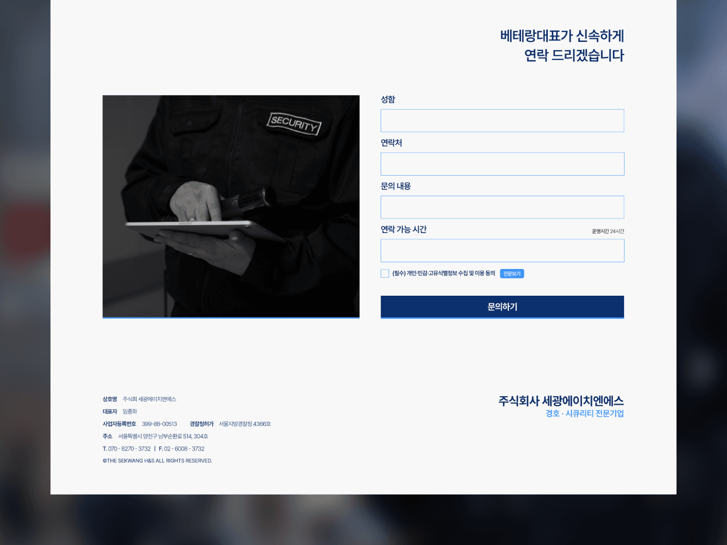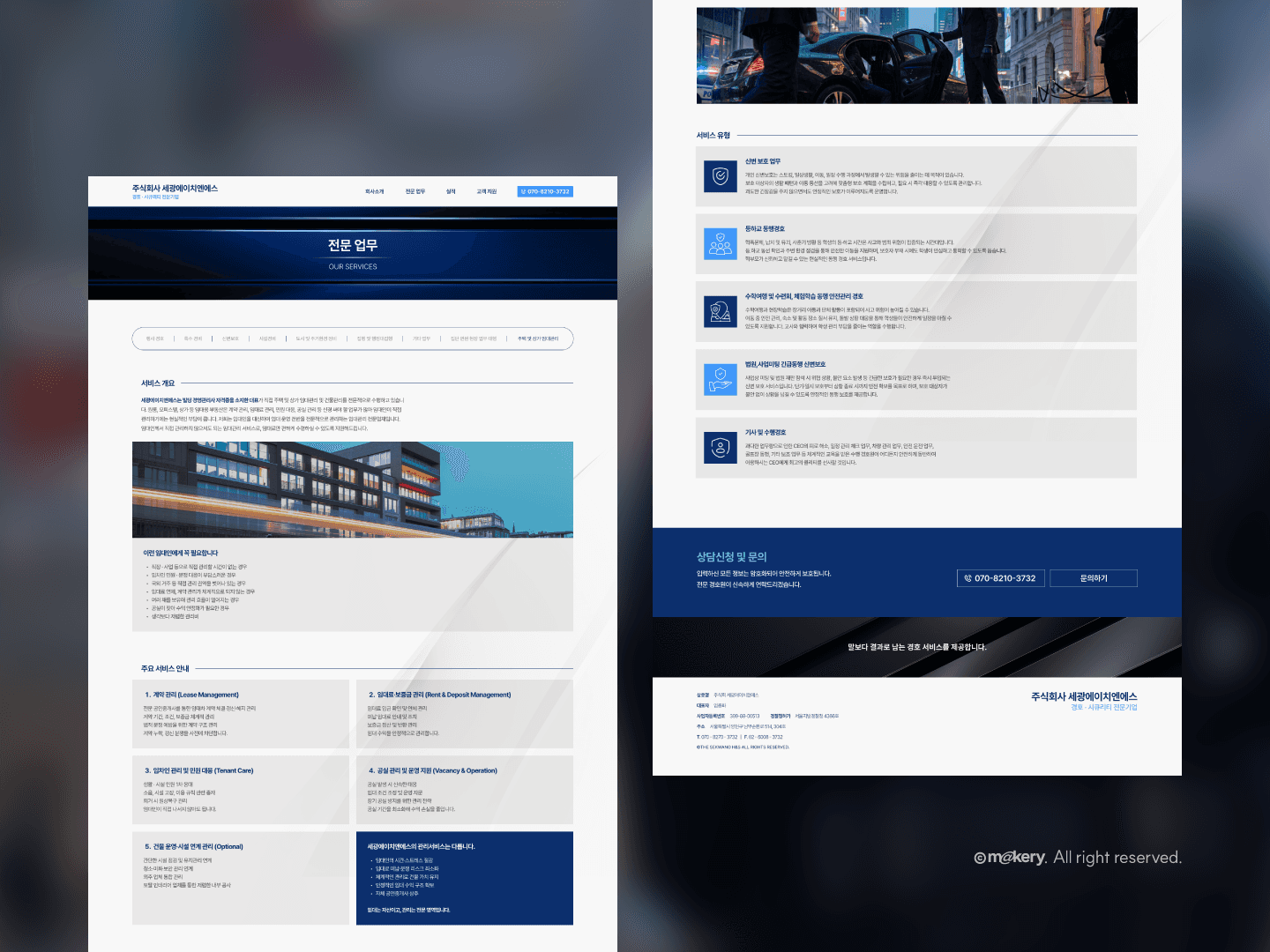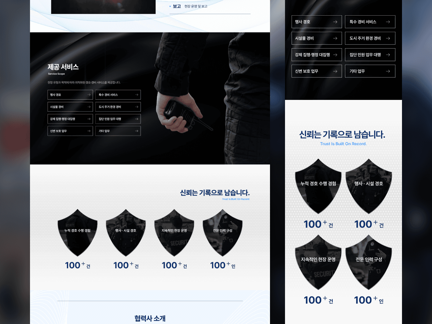 보안 전문 기업의 신뢰도를 전달하기 위해 안정감 있는 컬러와 구조적인 레이아웃으로 설계했습니다. 다양한 서비스 영역을 명확하게 전달하기 위해 정보 구조를 재정리하고 직관적인 UI 흐름을 구축했습니다. 문의 전환을 고려한 CTA와 폼 UX를 강화하여 실질적인 상담 유입이 가능하도록 설계했습니다.